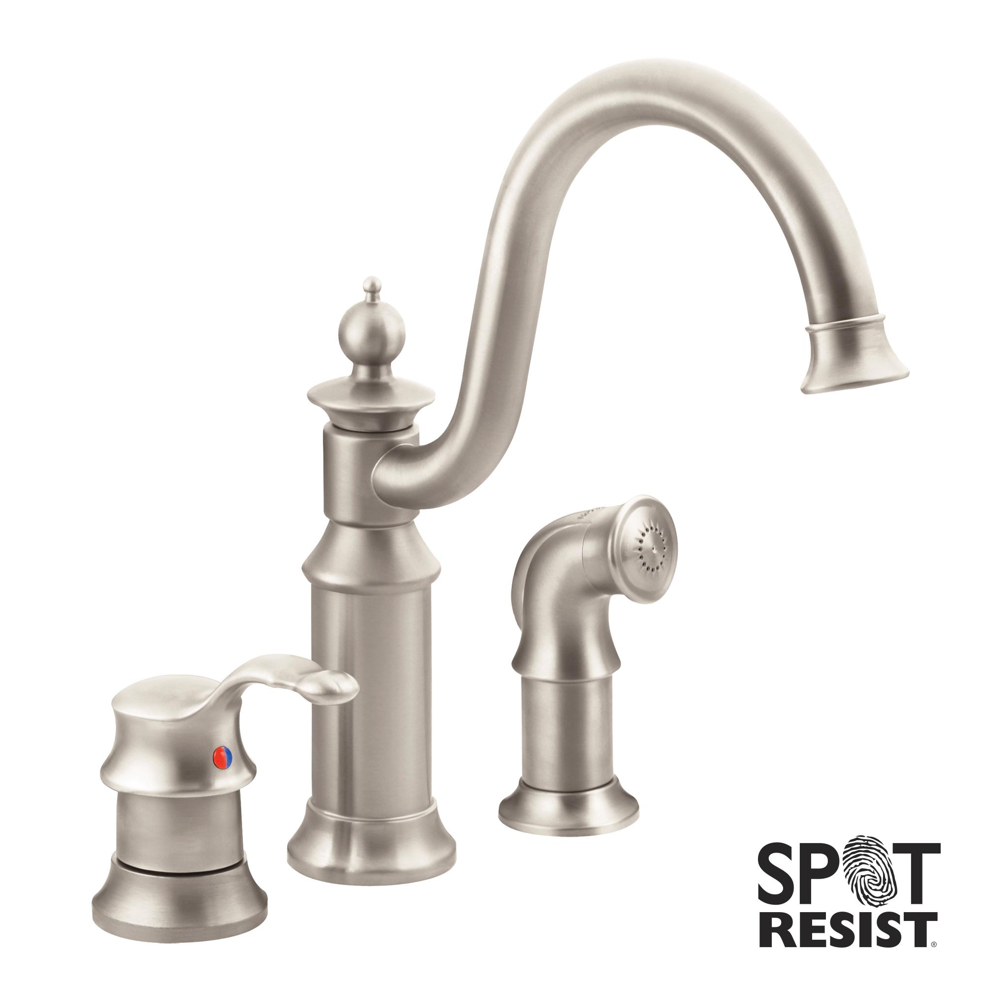 From finishes that are guaranteed to last a lifetime, to faucets that perfectly balance your water pressure, moen sets the standard for exceptional beauty and reliable, innovative. Classic stainless finish for a touch of elegance and the feeling of luxury. But why go for the cheap ones when moen faucets are ever beautiful; The pause feature conveniently stops the flow of water as the wand passes over the counter top. Moen 7594ew arbor 15 1/2 single handle deck mounted pulldown kitchen faucet with motionsense wave technology. For example, some faucets come with a single nut, while others feature two of them. Waterhill brings provincial elegance to today's more traditional homes. Install kitchen faucet, kitchen faucet victorian style, moen kitchen faucet with sprayer, moen single hole kitchen faucet, bronze bar faucet, antique kitchen faucets. Moen 7068 vestige two handle kitchen faucet with side spray moen 22376 lancelot double bowl undermount kitchen sink. If you have very hard water, you will probably need to change the cartridge more often. Please correct the highlighted entries and try again. Thus, it can resist water spot or fingerprint spot. What to look for when looking for a kitchen faucet.
